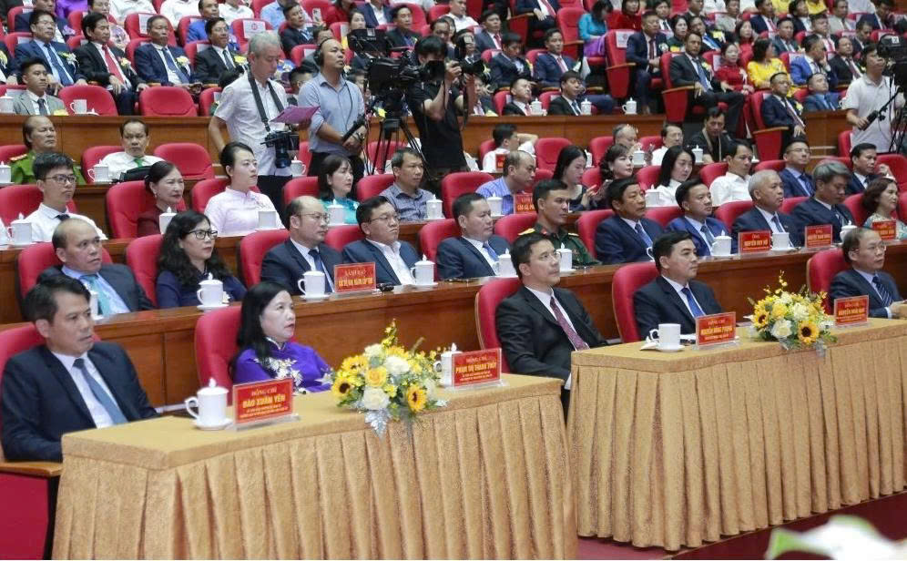 Đồng chí Nguyễn Hoài Anh, Ủy viên dự khuyết Trung ương Đảng, Phó Bí thư Tỉnh ủy, Chủ tịch UBND tỉnh và đồng chí Nguyễn Hồng Phong, Phó Bí thư Thường trực Tỉnh ủy dự lễ tôn vinh.