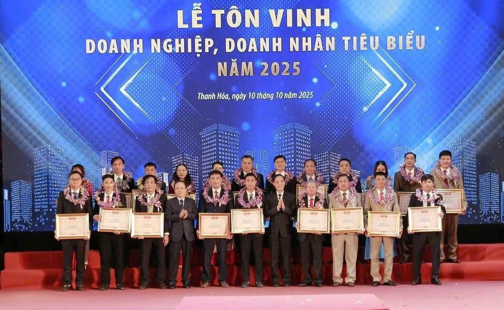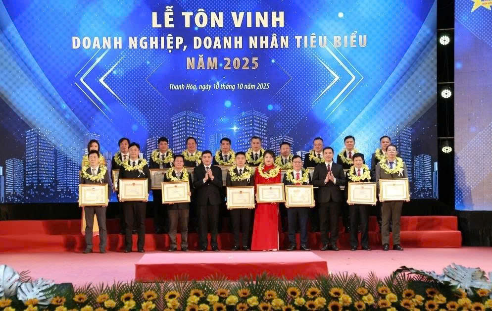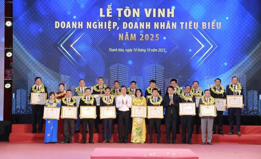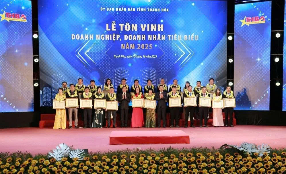 Tối 10/10, tại Trung tâm Hội nghị Hạc Thành, UBND tỉnh Thanh Hóa long trọng tổ chức Lễ tôn vinh doanh nghiệp (DN), doanh nhân tiêu biểu năm 2025.