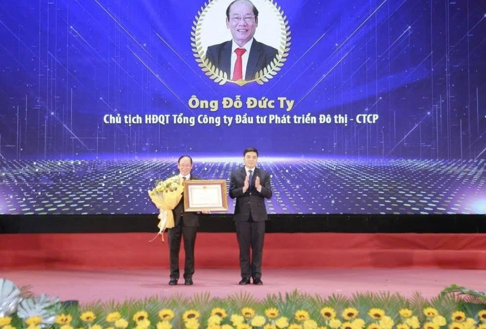 Thừa ủy quyền của Chủ tịch nước, đồng chí Nguyễn Hoài Anh, Ủy viên dự khuyết Trung ương Đảng, Phó Bí thư Tỉnh ủy, Chủ tịch UBND tỉnh trao Huân chương lao động hạng Nhất cho ông Đỗ Đức Ty, Chủ tịch HĐQT Tổng Công ty Đầu tư Phát triển Đô thị - Công ty CP.