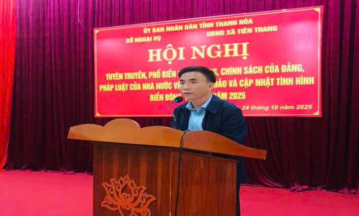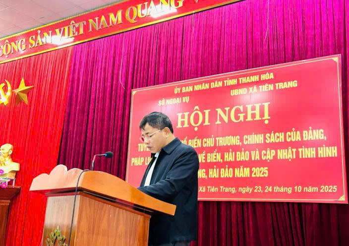 Ngày 23 và ngày 24/10/2025, Sở Ngoại vụ đã chủ trì, phối hợp UBND xã Tiên Trang và các sở, ban, ngành tổ chức Hội nghị tuyên truyền, phổ biến chủ trương, chính sách của Đảng, pháp luật của Nhà nước về biển, đảo; cập nhật thông tin tình hình Biển Đông - Hải đảo và an ninh, trật tự khu vực biển năm 2025.
