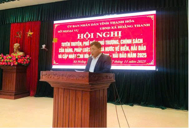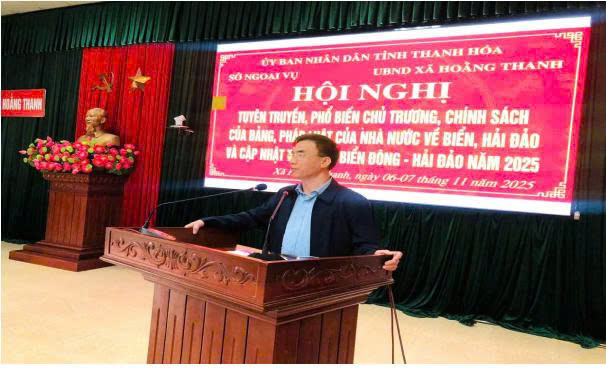 Từ ngày 6 - 7/11/2025, Sở Ngoại vụ đã chủ trì, phối hợp với Ban Tuyên giáo và Dân vận Tỉnh ủy, Ban Chỉ huy Bộ đội Biên phòng, Sở Khoa học và Công nghệ và Sở Nông nghiệp và Môi trường, xã Hoằng Thanh, xã Hoằng Tiến tổ chức Hội nghị tuyên truyền, phổ biến chủ trương, chính sách của Đảng, pháp luật của Nhà nước về biển, đảo; cập nhật tình hình Biển Đông - Hải đảo và tình hình an ninh, trật tự khu vực biển năm 2025 tại xã Hoằng Thanh. Hội nghị thu hút gần 200 đại biểu là cán bộ, lãnh đạo thôn, phố, ngư dân, chủ tàu thuyền …trên địa bàn hai xã tham dự.