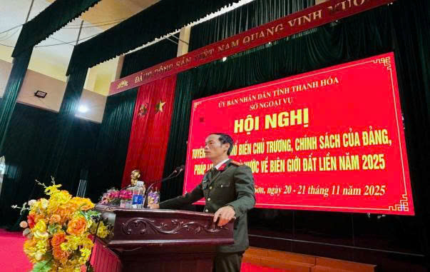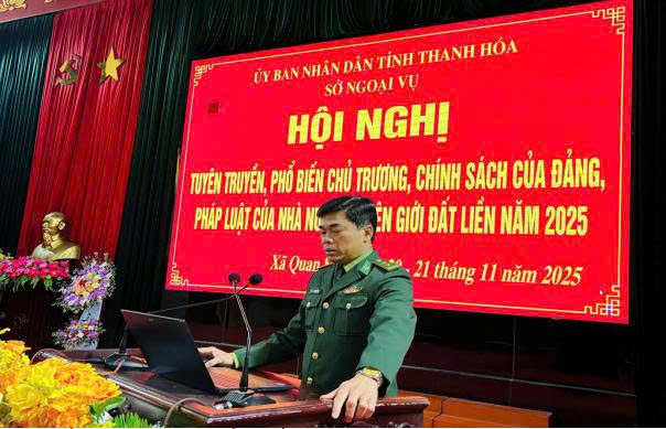 Ngày 20/11 và 21/11/2025, tại xã Quan Sơn, Sở Ngoại vụ - Cơ quan Thường trực của Ban Chỉ đạo công tác biên giới tỉnh đã phối hợp với UBND 08 xã biên giới (xã Na Mèo, xã Tam Lư, xã Mường Mìn, xã Tam Thanh, xã Sơn Thủy, xã Sơn Điện, xã Yên Khương và xã Bát Mọt) tổ chức Hội nghị tuyên truyền, phổ biến chủ trương, chính sách của Đảng, pháp luật của Nhà nước về công tác biên giới cho cán bộ và người dân