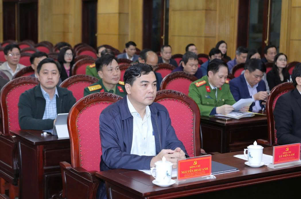 Chủ tịch UBND tỉnh Thanh Hóa Nguyễn Hoài Anh dự hội nghị tại điểm cầu Tỉnh ủy Thanh Hóa.