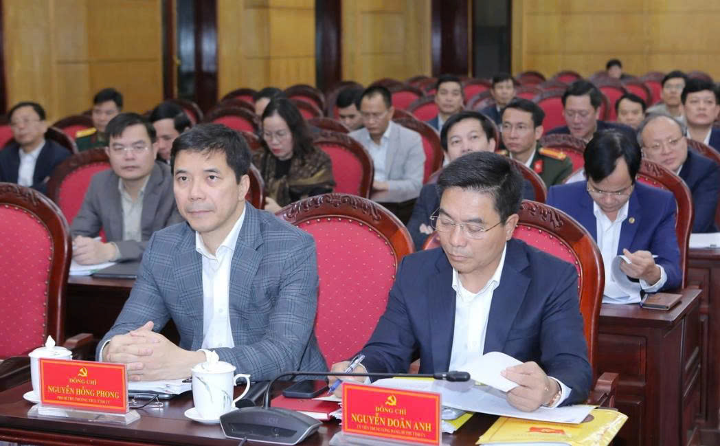 Bí thư Tỉnh ủy Thanh Hóa Nguyễn Doãn Anh và Phó Bí thư Thường trực Tỉnh ủy Thanh Hóa Nguyễn Hồng Phong dự hội nghị.