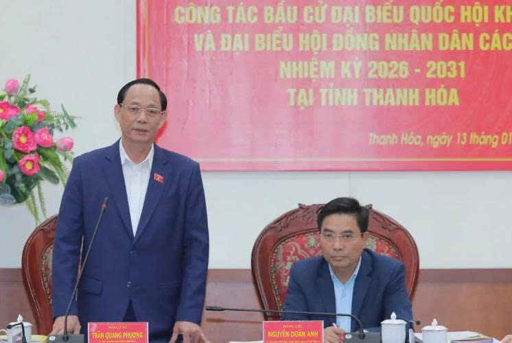 Kết luận buổi làm việc với tỉnh Thanh Hóa về công tác bầu cử, Phó Chủ tịch Quốc hội Trần Quang Phương đánh giá cao sự chủ động, nghiêm túc, đúng định hướng của tỉnh trong công tác chuẩn bị bầu cử; đồng thời yêu cầu tỉnh tiếp tục triển khai quyết liệt các nhiệm vụ còn lại, bảo đảm tiến độ, chất lượng, an toàn, dân chủ để cuộc bầu cử thực sự là ngày hội của toàn dân.