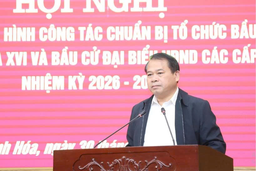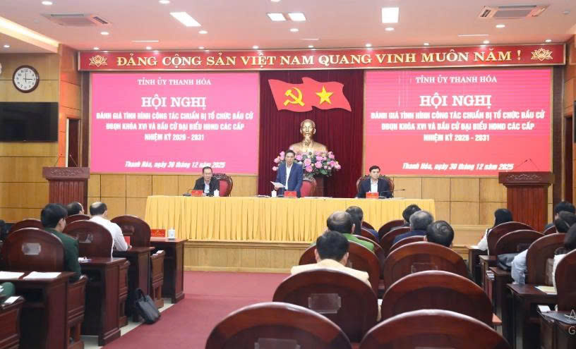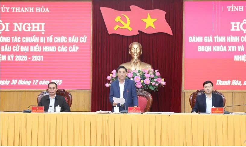 Chiều ngày 30/12, Ban Thường vụ Tỉnh ủy Thanh Hoá tổ chức hội nghị đánh giá tình hình công tác chuẩn bị tổ chức bầu cử ĐBQH khóa XVI và đại biểu HĐND các cấp nhiệm kỳ 2026-2031. Các đồng chí: Nguyễn Doãn Anh, Ủy viên Trung ương Đảng, Bí thư Tỉnh ủy, Trưởng Ban Chỉ đạo (BCĐ) cấp tỉnh cuộc bầu cử ĐBQH khóa XVI và đại biểu HĐND các cấp nhiệm kỳ 2026-2031; Nguyễn Hoài Anh, Ủy viên dự khuyết Trung ương Đảng, Phó Bí thư Tỉnh ủy, Chủ tịch UBND tỉnh, Phó Trưởng BCĐ; Trịnh Tuấn Sinh, Phó Bí thư Tỉnh ủy, Chủ tịch Ủy ban MTTQ tỉnh, Phó Trưởng BCĐ đồng chủ trì hội nghị.