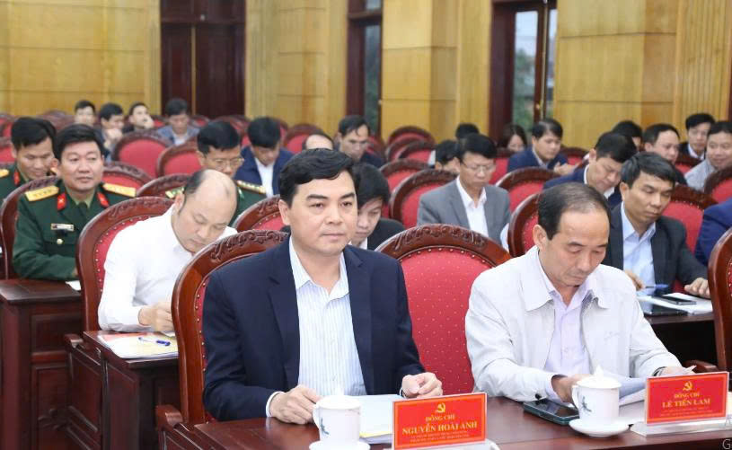 Chủ tịch UBND tỉnh Nguyễn Hoài Anh cùng các đại biểu dự hội nghị.