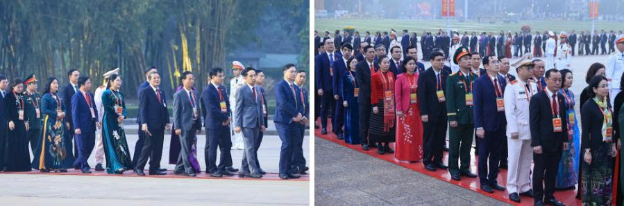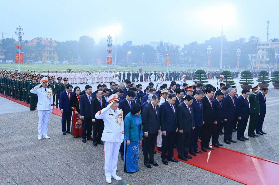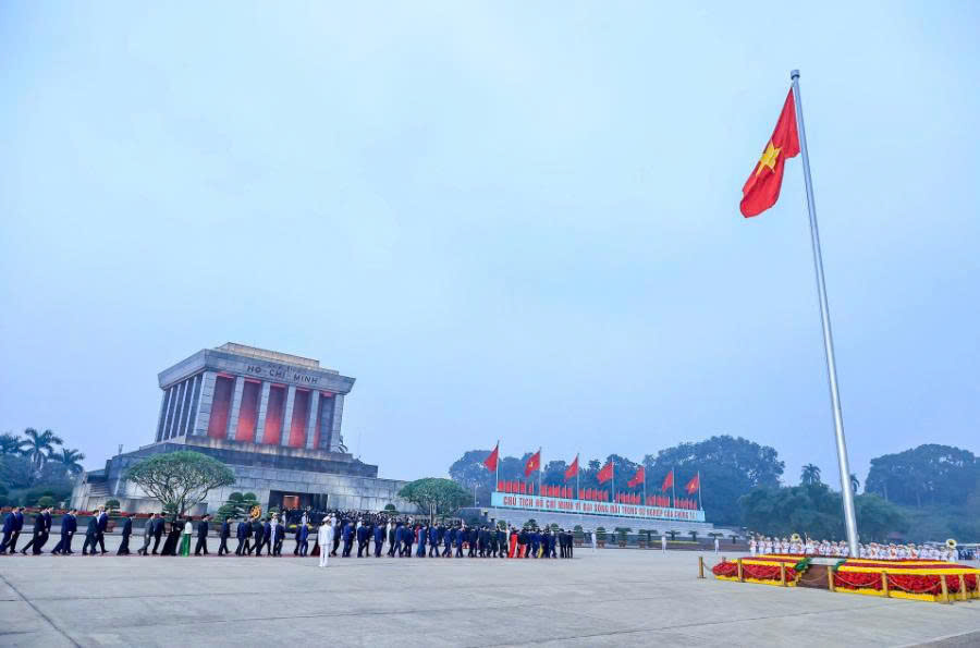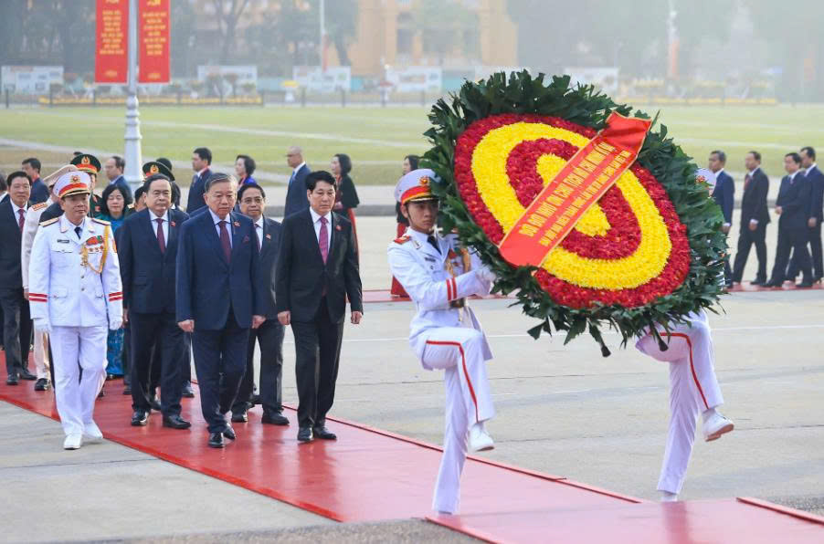Sáng 19/1, trước giờ khai mạc phiên họp trù bị Đại hội đại biểu toàn quốc lần thứ XIV của Đảng, Tổng Bí thư Tô Lâm, Chủ tịch nước Lương Cường, Thủ tướng Chính phủ Phạm Minh Chính, Chủ tịch Quốc hội Trần Thanh Mẫn, Thường trực Ban Bí thư Trần Cẩm Tú; Chủ tịch Ủy ban Trung ương Mặt trận Tổ quốc Việt Nam Bùi Thị Minh Hoài cùng các Ủy viên Bộ Chính trị, Bí thư Trung ương Đảng và đại biểu dự Đại hội đại biểu toàn quốc lần thứ XIV của Đảng đã đặt hoa, vào Lăng viếng Chủ tịch Hồ Chí Minh.