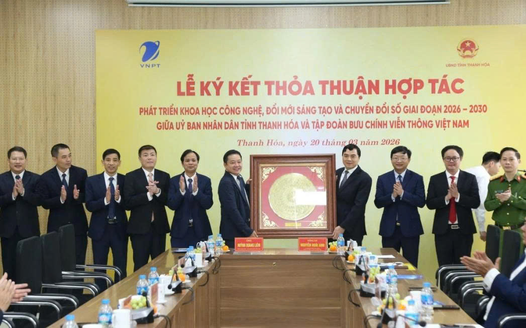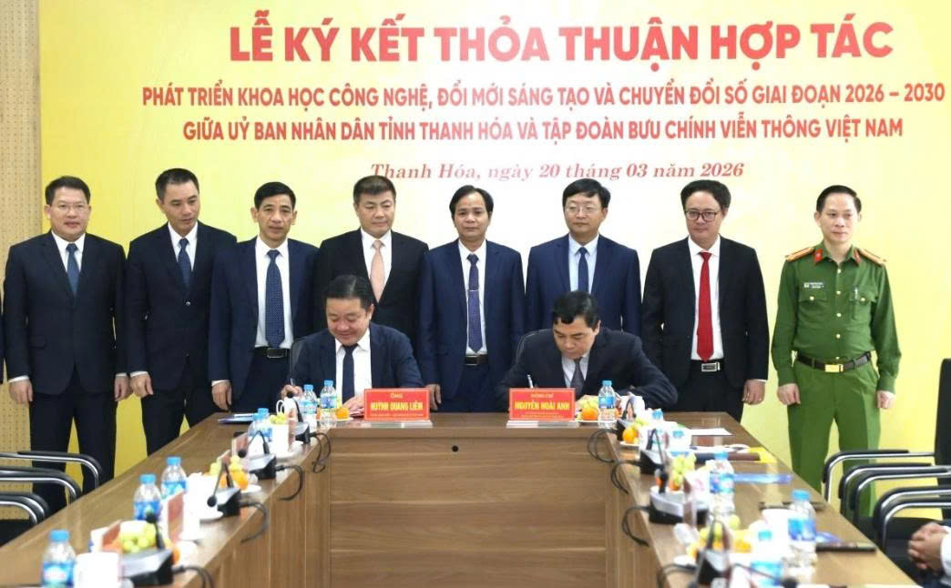 Sáng 20/3, UBND tỉnh Thanh Hóa tổ chức Lễ ký kết Thỏa thuận hợp tác với Tập đoàn Bưu chính Viễn thông Việt Nam (VNPT) về phát triển khoa học công nghệ (KHCN), đổi mới sáng tạo (ĐMST) và chuyển đổi số (CĐS) giai đoạn 2026-2030.