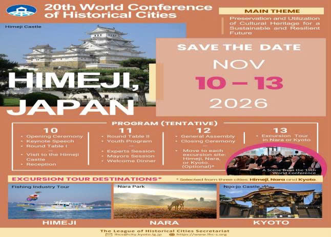 Chương trình Hội nghị dự kiến bao gồm nhiều hoạt động phong phú như lễ khai mạc, phát biểu chính, các phiên thảo luận chuyên đề, diễn đàn thị trưởng, phiên họp chuyên gia, chương trình dành cho thanh niên và Đại hội đồng. Bên cạnh các nội dung trao đổi chính sách, các đại biểu còn có cơ hội tham gia tham quan, khảo sát thực tế tại Himeji Castle – Di sản Thế giới được UNESCO công nhận, cũng như trải nghiệm các mô hình bảo tồn tiêu biểu tại các thành phố: Nara và Kyoto, Nhật Bản.