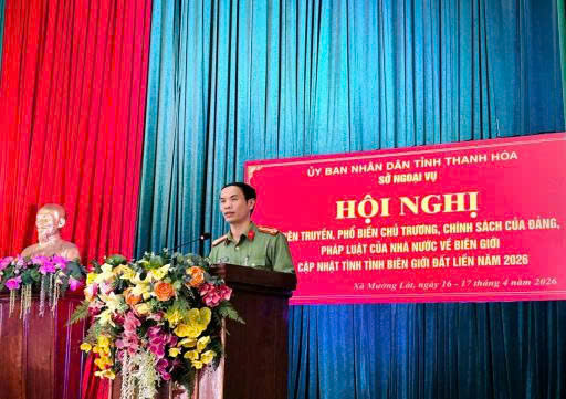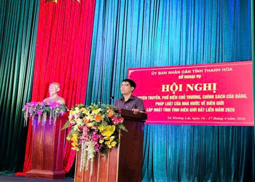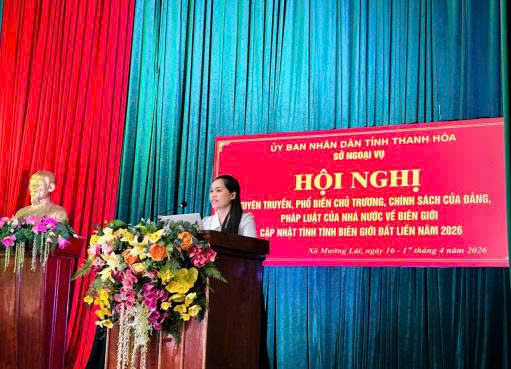 Ngày 16/4 và 17/4/2026, tại xã Mường Lát, Sở Ngoại vụ - Cơ quan Thường trực Ban Chỉ đạo công tác biên giới tỉnh đã phối hợp với các sở, ban, ngành có liên quan và UBND các xã biên giới tổ chức Hội nghị tuyên truyền, phổ biến chủ trương, chính sách của Đảng và pháp luật của Nhà nước về biên giới lãnh thổ quốc gia; cập nhật tình hình trên tuyến biên giới đất liền năm 2026 cho cán bộ và người dân của các xã Tam Chung, Mường Chanh, Mường Lát, Trung Lý, Pù Nhi, Quang Chiểu, Nhi Sơn, Hiền Kiệt