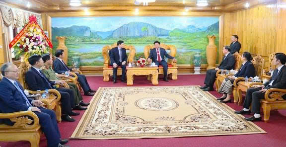 Đoàn công tác tỉnh Thanh Hóa chào xã giao đồng chí Bí thư Tỉnh ủy và chúc Tết Lãnh đạo tỉnh Hủa Phăn (Nguồn ảnh: Báo Thanh Hóa).
