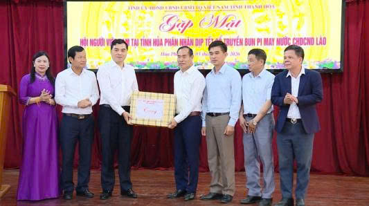 Lãnh đạo tỉnh Thanh Hóa tặng quà chúc mừng bà con kiều bào Thanh Hóa tại Hủa Phăn nhân dịp Tết cổ truyền Bunpimay, Lào năm 2026. (Nguồn ảnh: Báo Thanh Hóa).